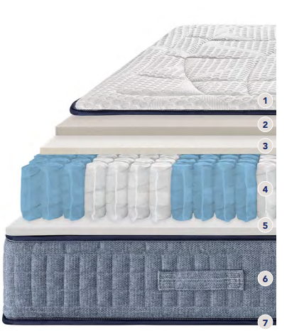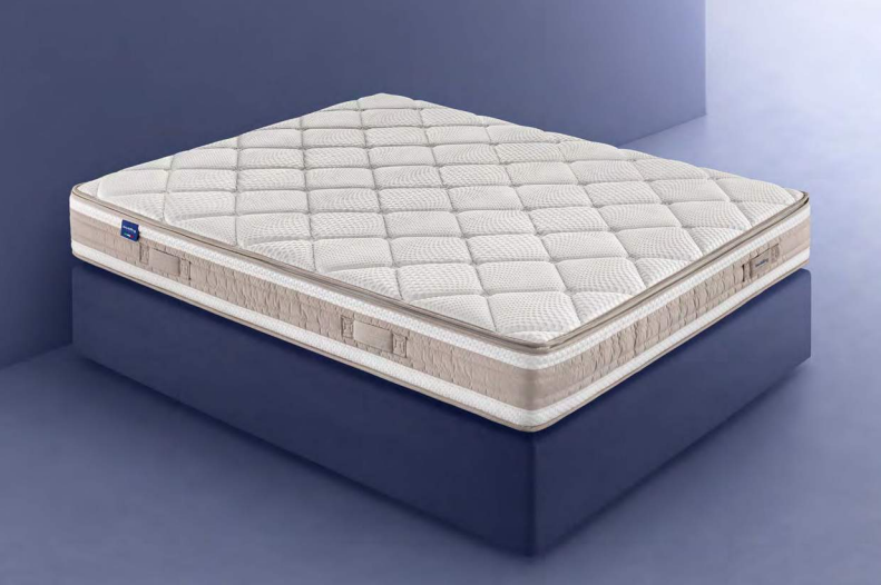 Materasso caratterizzato da un esclusivo sistema ad accoglienza progressiva composto da 800 molle indipendenti in acciaio temperato, suddivise in 7 zone di portanza differenziata all’interno di un box in X-Foam, che assicurano un sostegno efficace alla colonna vertebrale. Lo strato in MemoFeel nella trapuntatura offre un’accoglienza delicata ed evita compressioni muscolari.