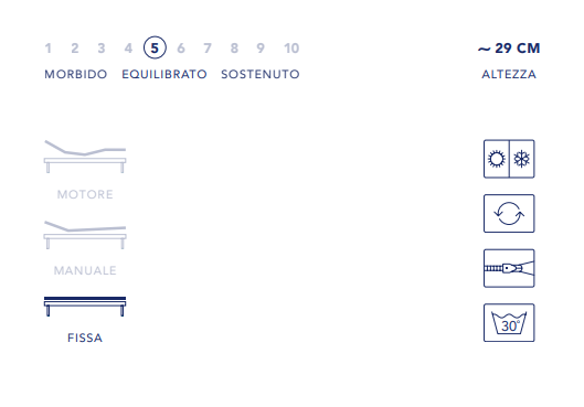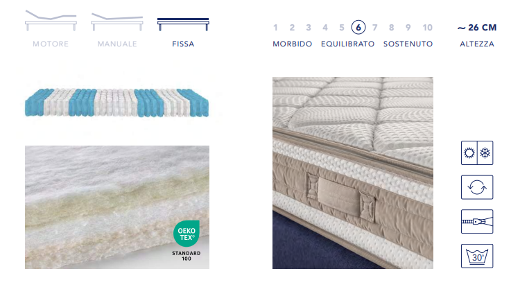 1 | LUXURY VISCOSA Tessuto elegante, trattamento HEIQ Smart Temp ad azione termoregolatrice che garantisce freschezza e massimo benessere. Rivestimento sfoderabile con cerniera sottobordo lavabile a secco.