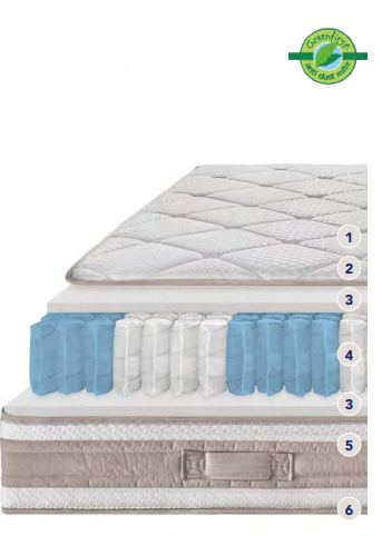 1 | OPTICAL Tessuto a nido d’ape, in morbida e fresca viscosa traspirante, con trattamento naturale GreenFirst, aiuta la dispersione dell’umidità corporea, ipoallergenico ed antiacaro. Rivestimento sfoderabile con cerniera sottobordo lavabile a 30°